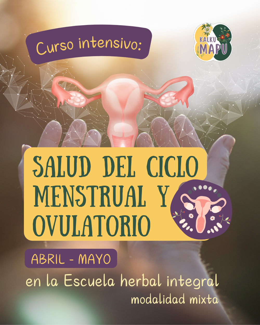 En este Curso estudiamos el Ciclo menstrual ovulatorio, la anatomía y órganos sexuales, las fases del ciclo, la fisiología hormonal, los biomarcadores, el registro del ciclo y más!